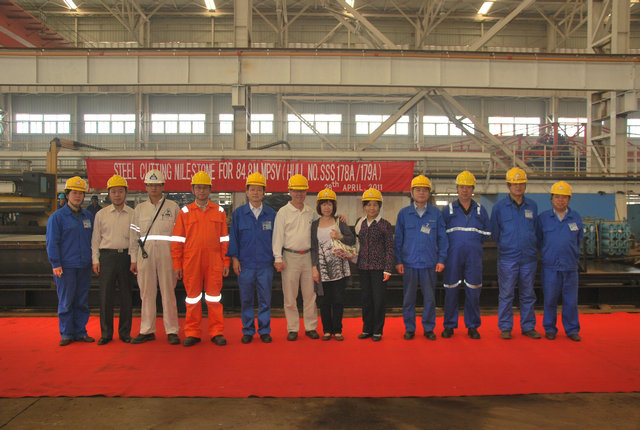 The steel cutting of 84.8 m Multi-purpose Offshore Supply Vessel with DP2 & Hybrid Powered was taken place in the morning on 28 Apr 2011 For Sealink International Bhd.