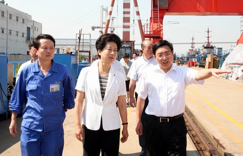 On September 5, 2012 in the morning, Hong Qiang, the Member of the Standing Committee of the CPC of Jiangsu Provincial Committee and provincial disciplinary official accompanied by Party Secretary Zhang Jinghua, members and city city disciplinary official Sun Jian, and secretary general Li Xuefeng come and surveyed our shipyard, with great interest, Chairman Hong Qiang has visited yard show room and listened to the report of shipyard development and visited workshop and yard jetty. When Chairman Hong come to know that replied on ourself, our ASD tugboat and offshore vessel quantity ranked No.1 in China in the low market enviroement, Qiang highly phrased yards marketing oriental strategy of special, difference and misplace development, he has encouraged yard to make bigger and stronger. And meanwhile she is fully confirmed the passion on work and wise decision from yard management group.