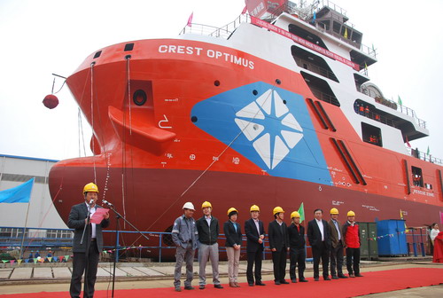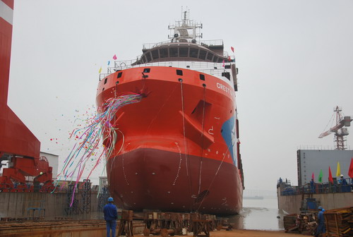 On the morning of 1st April 2014, the 16000bhp hybrid anchor towing supply oil recovery vessel was successfully launched in Zhenjiang Shipyard. |