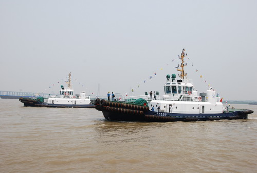 On the morning of 12th June, two 2×1176kW ASD tugboats named Jiang Tanggang No. 19 and Jiang Tanggang No. 20 were delivered to Tangshan Port Group Co., Ltd from Zhenjiang Shipyard.