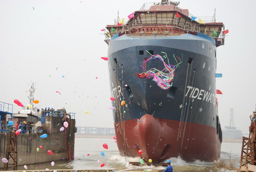On March 13 2015, the fifth electric-driven ocean-oil platform supply vessel, built for American Tidewater Company was successfully launched in Zhenjiang Shipyard. |
