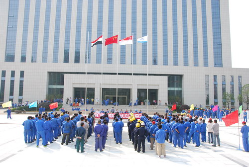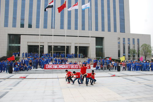 On May 25th, 2015, the 64th anniversary day of Zhenjiang Shipyard, members from the shipyard’s Party Committee, Labor Union and Youth League Committee jointly held the 23th Tug of War in the yard. 11 teams from different departments and subcontractors in the yard attended the competition. The yard’s machinery workshop team finally got the first prize of Civilized Trophy. Ship-owner representatives and shipyard leaders attended the ceremony and awarded the winner. During the intervals of the competition, some employees performed square dancing, aerobic exercises and Taiji Kung-fu Fan as entertainment.