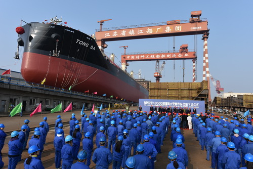 In the morning of November 22rd, 2017, the second sea camel type 48500DWT heavy lift general cargo carrier in the world, which was funded jointly by SUMEC MARINE CO.,LTD and Topsheen Shipping Group Limited, has been launched successfully in Jiangsu Zhenjiang Shipyard (Group) Co.,LTD. |