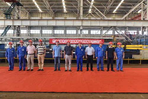 Lu Juncheng, of general manager of Ningbo Zhoushan Co., Ltd., and Chen Jiating, vice general manager attend the ceremony of steel cutting.