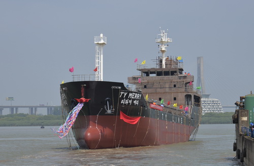 【Launching】 The 5th Korea 3700DWT Class Cargo Ship we build in series was named and launched