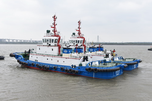 On October 14th, 2019, first patch of two units of ASD tugboats with FIFI, named “YI TUO 101” and “YI TUO 102”, which belongs to 11 units of engineering vessels for Guinea Al-project, were smoothly sailing. These vessels’ power design, performance, safety and environment represent high efficiency and green development concept, reaching advanced level. The use of these vessels mark the starting stage of Guinea Al-project. |
