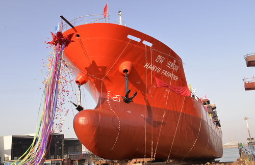 On the morning of Dec. 13th, 2019, 4900dwt sulfur tanker, which was built for Korea owner and named “HANYU FRONTIER” has been successfully launchd and named. This symbols a new breakthrough in Korea special shipping market after shipbuilding of bulk carriers and self-unloading coal carriers. |