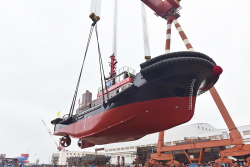 On February 29th, 2,646kW ASD tugboat, which is built for Zhoushan Xinya Repairing Shipyard Co. , Ltd, has been lifted to launching successfully. |