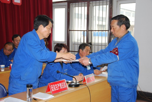 圖為公司安全責任人遞交《安全生產(chǎn)責任狀》