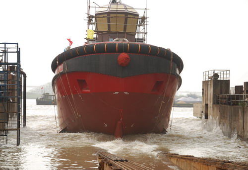 2014年5月26日,由我司批量化建造的3300AV(33米)全回轉拖船AV001#、AV002#順利下水。