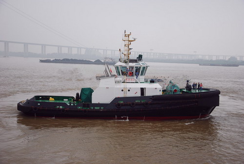 2014年6月17日下午,由江蘇省鎮江船廠(chǎng)(集團)有限公司為寧波港股份有限公司建造的7200HP全回轉拖船——“甬港拖31”完工交付,順利啟航。 |