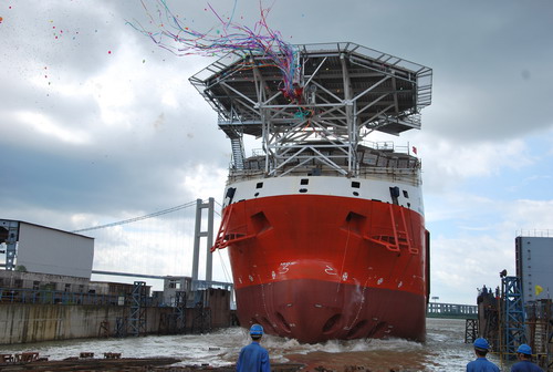 2015年8月11日下午,我公司為國外船東建造的又一艘具有國際先進(jìn)水平的85米維護工作船順利下水。 |