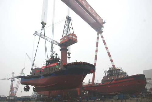 【下水】我公司建造的全回轉工作船順利吊裝下水