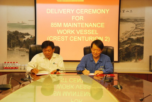 2016年6月15日上午,我公司為國外船東建造的又一艘具有國際先進(jìn)水平的85米維護工作船——“CREST CENTURION 2”,在鎮江船廠(chǎng)舉行了交付簽字儀式。該船是我公司一月內交付的第三艘85米石油平臺支持船。至此,我公司自2008年金融危機爆發(fā)以來(lái)所有簽訂的多系列多批量海洋工程船舶全部順利交付。 |