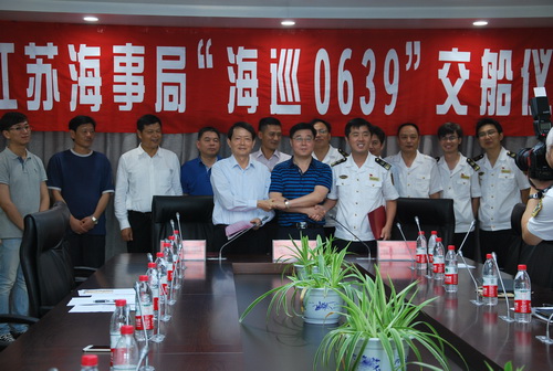 2016年8月10日上午,我公司為江蘇海事局建造的批量海巡船第二艘船——“海巡0639”順利啟航,并在鎮江海事局舉行了簽字交付儀式。 |